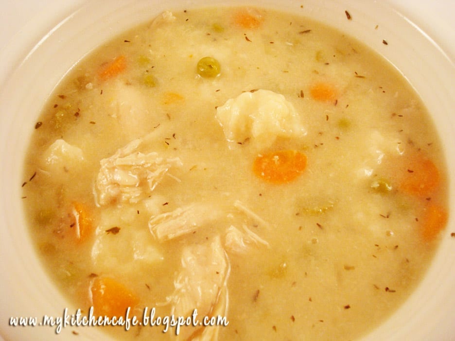Heat the soup to boiling and drop teaspoonful amounts (the dumplings should be fairly small, they’ll expand while cooking) of dumpling dough into the boiling soup, covering the entire surface of the soup (don’t make more than one layer of dumplings). Reduce the heat to simmering, cover and let the dumplings cook for 15 minutes. Do not lift the lid of the pot while the dumplings cook.